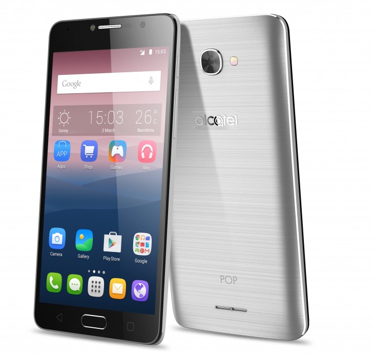 Прежде всего, мы хотим рассказать вам о Alcatel POP 4. Он поставляется с 5-дюймовым сенсорным IPS дисплеем с разрешением 720p, четырёхъядерным процессором Qualcomm Snapdragon 210 с 1 Гб оперативной памяти и всего лишь 8 Гб встроенной памяти, которая расширяется до 32 Гб при помощи microSD карт. Смартфон выполнен в пластиковом корпусе, как и другие телефоны линейки. Его размеры составляют 140,7 х 71,4 х 7,99 мм.
