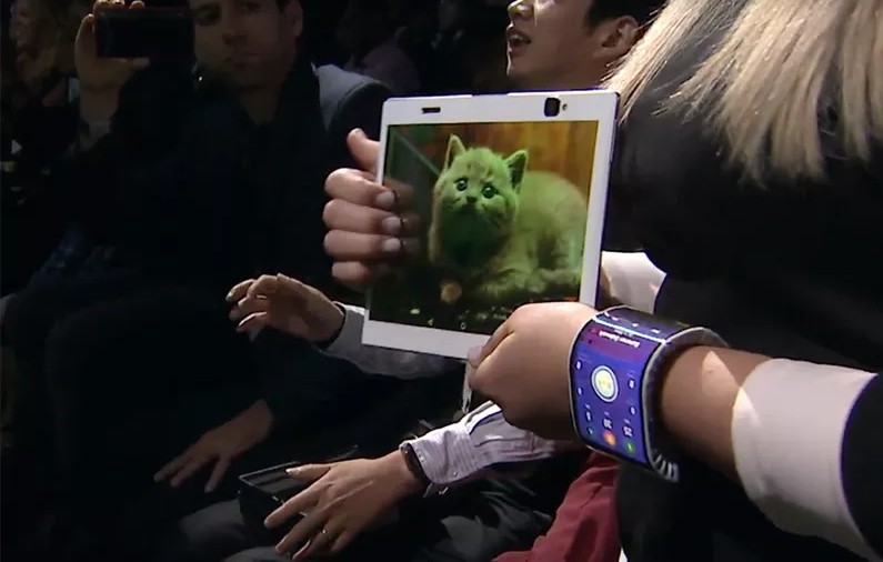 Производитель похвастался полностью сгибаемыми смартфоном и планшетом. Демонстрировала девайсы известная YouTube-звезда Мегги Маккартни.