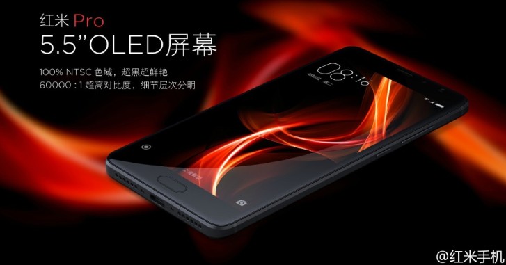 Xiaomi Redmi Pro оснащен 5.5 дюймовым 2.5D OLED дисплеем с разрешением FHD, который отображает 100% стандарта NTSC, аккумулятором емкостью 4050 мАч, сканером отпечатков пальцев, расположенным в кнопке Home.