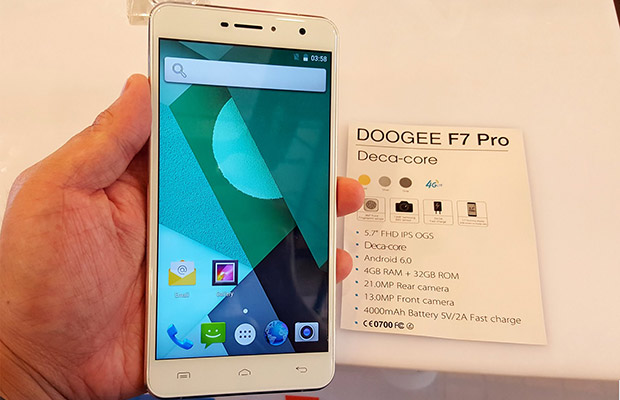 Doogee F7 Pro оснащен 5.7-дюймовым IPS дисплеем с FullHD разрешением, 10-ядерным чипом MediaTek Helio X20 MT6797, 4 ГБ ОЗУ и 32 ГБ расширяемой ПЗУ, 21-Мп основной (SONY IMX230) и 8-Мп фронтальной камерами.
