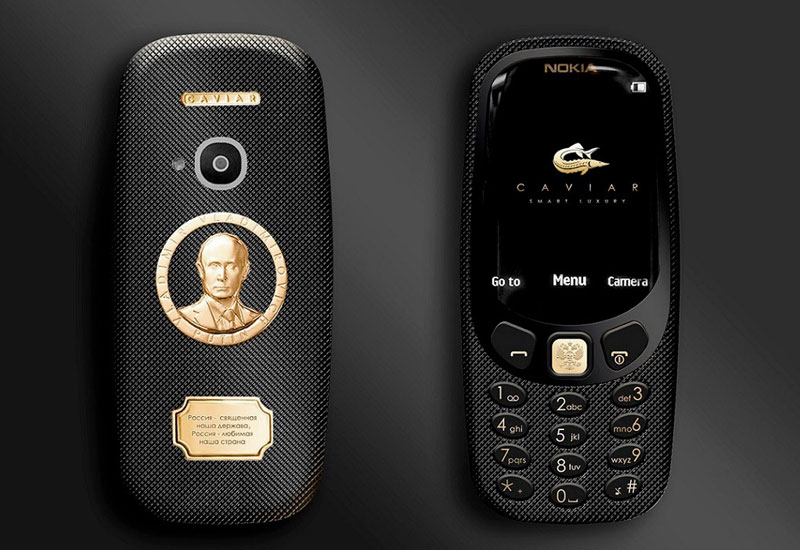 Caviar также представила версию Nokia 3310 Supremo Putin, на которой демонстрируется золотой барельеф российского президента, табличка с цитатой из гимна и особая гравировка.