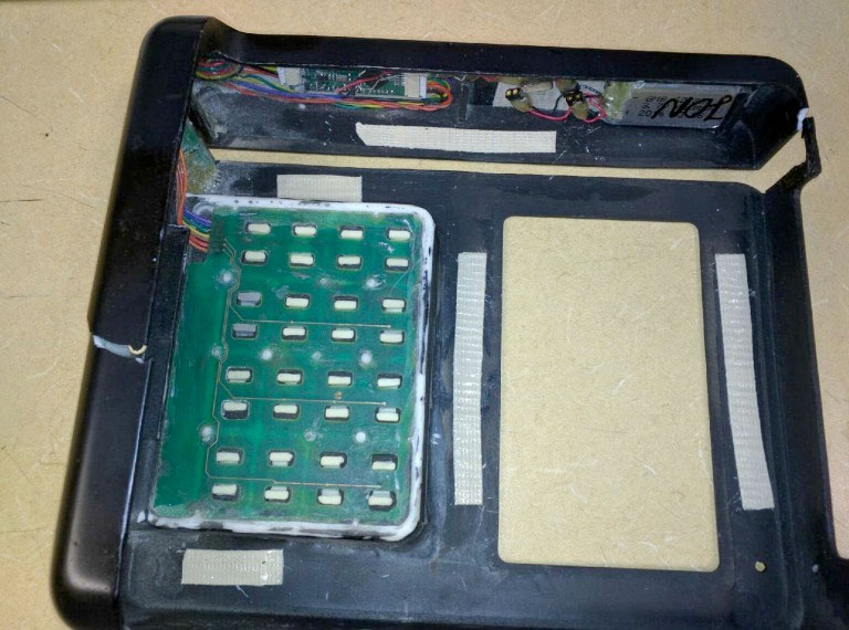 Устройство имеет рабочую клавиатуру. Чтобы украсть пароли карт и данные NFC-чипов, мошенники устанавливали созданный прибор сверху POS-терминалов для безналичной оплаты.