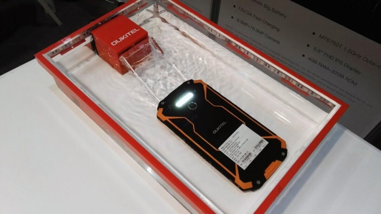 Также на стенде Oukitel красовался сверхзащищённый от всех видов внешнего воздействия смартфон 7J73, оснащенный аккумулятором емкостью 10 000 мАч.