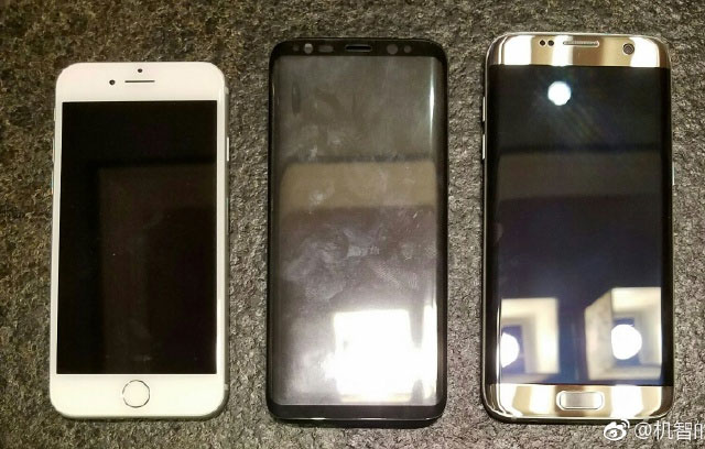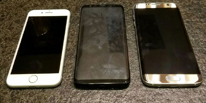 Шпионам снова попал в руки будущий флагман Samsung Galaxy S8 и они уже умудрились пофотографировать его вместе с iPhone 6 и Galaxy S7 edge. Таким образом мы можем уже четко понять, какие девайс получит габариты.