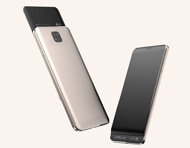 Верхняя часть слайдера LG V30 выдвигается, а под ней находится ещё один OLED-дисплей. Судя по всему, второй экран может служить для быстрого доступа к избранным приложениям или отображения разной полезной информации. При необходимости, на него можно выводить клавиатуру, клавиши управления приложениями и др.