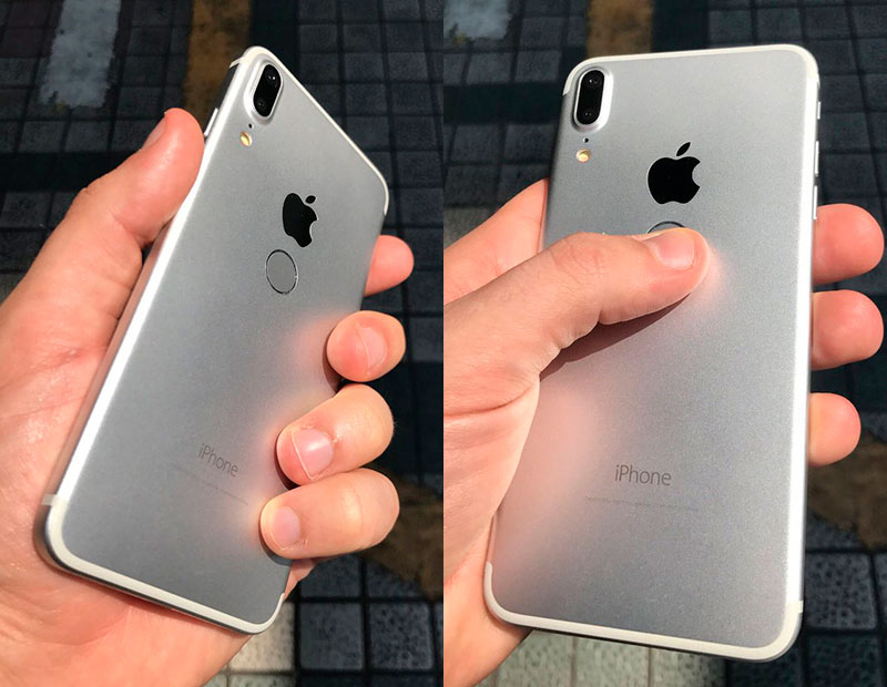 Опубликовал рендеры латвийский блогер Вениамин Гескин. Как видно, смартфон обладает металлическим корпусом с пластиковыми вставками возле нижнего и верхнего торцов. На тыльной панели красуется вертикально расположенная двойная основная камеру, а по центру можно наблюдать сканер отпечатков пальцев, над которым достаточно невзрачно помещен логотип Apple.