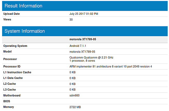 После тестирования в бенчмарке GFXBench, смартфон Motorola XT1789, который, как утверждается, является Moto X4, теперь был замечен на веб-сайте Geekbench.
