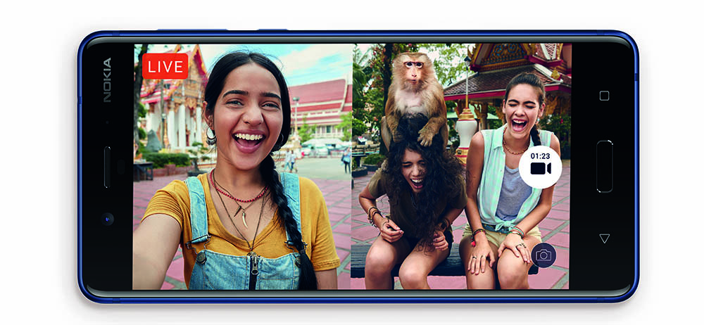 Селфи камера имеет один 13-Мп объектив (размер пикселя 1,12 мкм) с фазовым автофокусом и диафрагмой f/2.0. Телефон может одновременно делать трансляцию с фронтальной и задней камеры на YouTube и Facebook сразу на одном экране. HMD называет это Dual-Sight (уникальный режим двусторонней съемки).