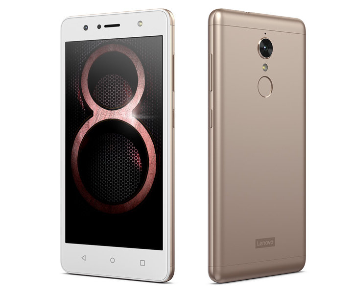 Lenovo K8 получил 5.2-дюймовый IPS 2.5D экран с разрешением 1280 x 720 пикселей, металлический корпус с пластиковыми вставками в верхней и нижней части, сканер отпечатков пальцев на тыльной панели, ниже основной камеры.