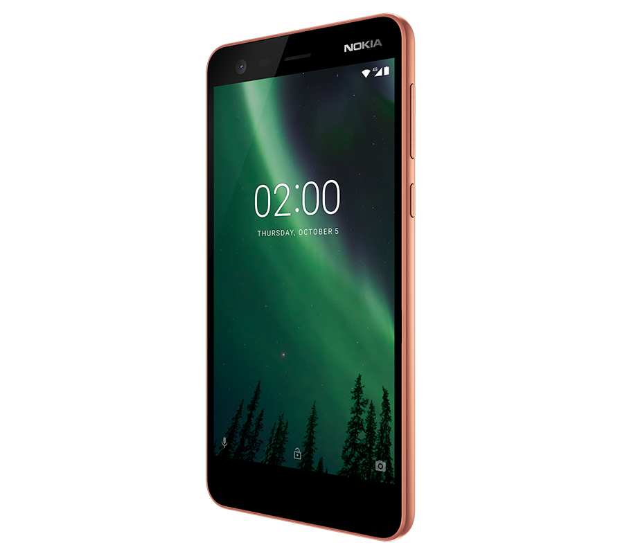 Nokia 2 — самый дешевый смартфон компании. Он поставляется с металлической боковой рамой, которая выполнена из алюминия 6000 серии, и поликарбонатной задней крышкой. Телефон также имеет защиту от воды и пыли по рейтингу IP52. Есть поддержка работы двух SIM-карт и microSD при помощи гибридного слота
