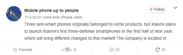 Любители Xiaomi с нетерпением ждут, когда компания выпустит устройство данного типа. Компания известна тем, что продает флагманские телефоны по довольно доступной цене. Однако включение водонепроницаемой защиты повысит их цену. Генеральный директор Xiaomi Lei Jun сообщил, что, если клиенты готовы тратить на 20% или 30% больше за водостойкость, то Xiaomi может подумать о создании водонепроницаемого телефона.