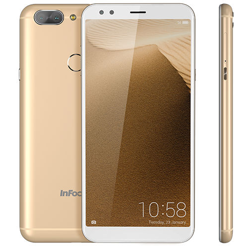 Размеры InFocus M7s, который имеет цельнометаллический корпус, составляют 152,3 x 72,4 x 8,8 мм, а вес 148 граммов. Он поставляется в двух цветовых вариантах: Platinum Light Gold и Obsidian Black. Телефон оснащен 5,7-дюймовым On-Cell IPS дисплеем с HD+ разрешением (1440х720 пикселей) и соотношением между экраном и передней панелью в 82,3% (18:9). Экран также покрыт защитным изогнутым 2.5D стеклом.