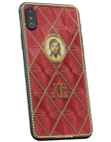 Православная версия пасхального iPhone X украшена миниатюрой с ликом Христа с новгородской иконы XII века «Спас нерукотворный». При ее создании использовался красный композитный камень, ну а сетка, как у католической версии, является ажурной и имеет двойное золотое покрытие.