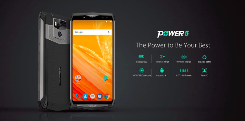 Начинка Ulefone Power 5 включает 8-ядерный процессор, 6 ГБ оперативной памяти, 64 ГБ флэш-памяти, 6-дюймовый полноэкранный дисплей с FHD+ разрешением и соотношением сторон 18:9.