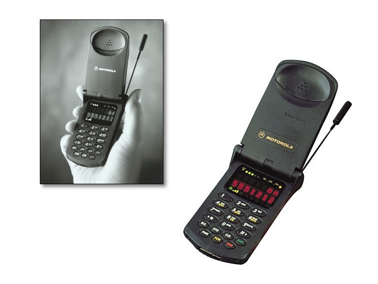 В 1989 году Motorola выпустила свой первый «флип-телефон» MicroTAC 9800x. На момент выпуска MicroTAC был самым легким и маленьким мобильным телефоном на рынке. Улучшения в технологии батареи и миниатюризации схемы сократили его общий размер и вес. Ключевое нововведение заключалось в том, что часть телефона складывалась, что сделало его почти идеальным для носки в кармане или же сумке.