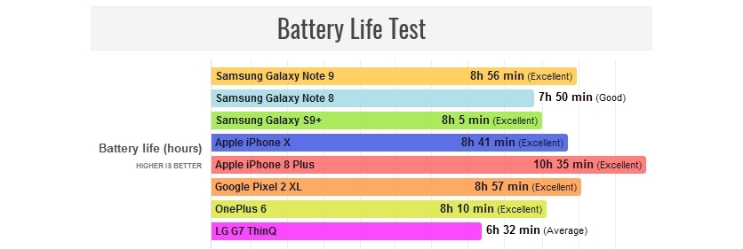 В общей сложности Note9 продержался чуть меньше 9 часов, обойдя iPhone X, OnePlus 6 и LG G7 ThinQ. А вот iPhone 8 Plus продержался на 99 минут дольше, несмотря на скромные 2675 мАч под «капотом».