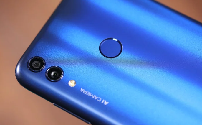 С тыла Honor 8C есть двойная основная камера, состоящая из 13-Мп главного датчика с диафрагмой f/1.8 и 2-Mп дополнительного датчика с диафрагмой f/2.4. Размещаются они вертикальным образом в левом верхнем углу. Под камерами есть светодиодная вспышка. Ближе к центру оказался сканер отпечатков пальцев.