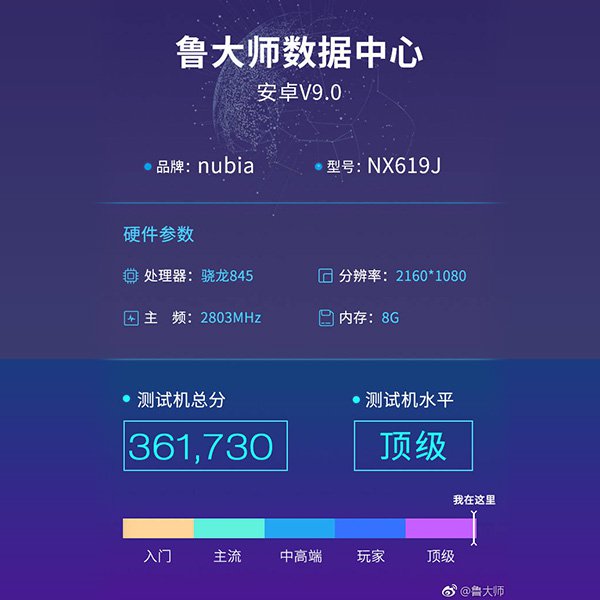 Телефон набрал 361 730 баллов в бенчмарке Master Lu. Для сравнения контрольный балл Nubia X, который питается от такого же процессора и имеет тот же объем оперативной памяти, составляет 311 441. Если это оценка версии на 8 ГБ, ожидайте, что модель с 10 ГБ покажет более высокий результат.