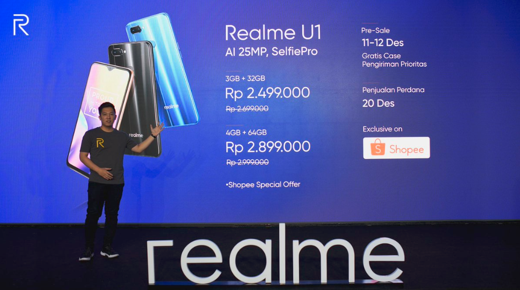 Realme U1 будет продаваться в Индонезии в версии с 3/32 ГБ памяти по цене около $171 и с 4/64 ГБ памяти по цене около $199. Смартфон является эксклюзивным для индонезийского интернет-магазина Shopee, его первая продажа состоится 20 декабря.