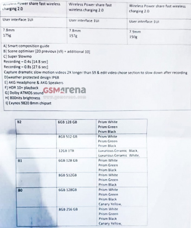 Парень опубликовал фото двух листов формата А4, на которых перечислены технические характеристики Samsung Galaxy S10.