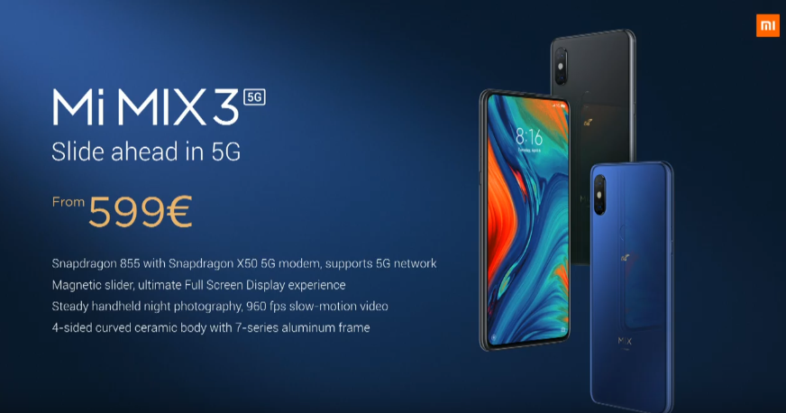 Первый продукт — смартфон Mi MIX 3 5G, который поставляется с новым процессором и новым модемом.