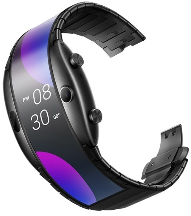 Диковинный девайс имеет гибкий 4-дюймовый экран с разрешением 960 х 192 пикселей, который состоит из 11 слоев (включая слой, защищающий от воды) и при этом его толщина составляет всего 0.64 мм.
