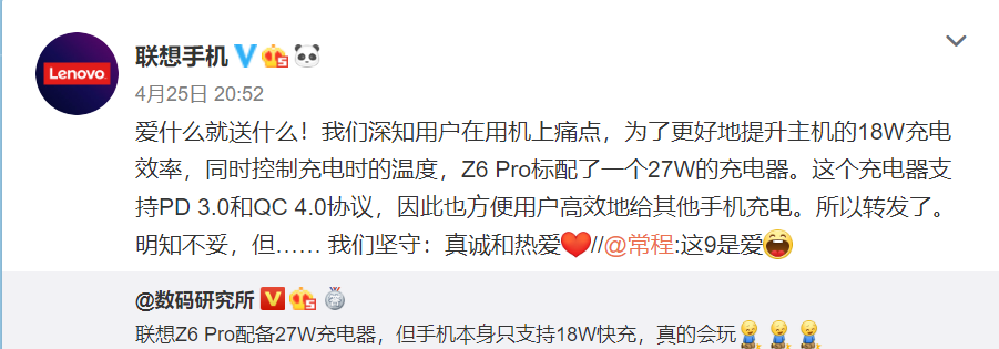 На китайской платформе микроблогов руководитель компании сообщил, что зарядное устройство, которое поставляется со смартфоном, поддерживает USB Power Delivery 3.0 и стандарты Qualcomm Quick Charge 4.0. Таким образом, вы можете использовать зарядное устройство для зарядки других телефонов.