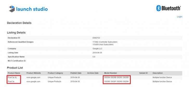 Всего через SIG (Bluetooth Special Interest Group) прошло восемь вариантов смартфона — четыре Pixel 3a и еще четыре Pixel 3a XL. Кроме номеров моделей мы также узнали, что они будут поддерживать Bluetooth 5.0 и работать на Android Pie из коробки.