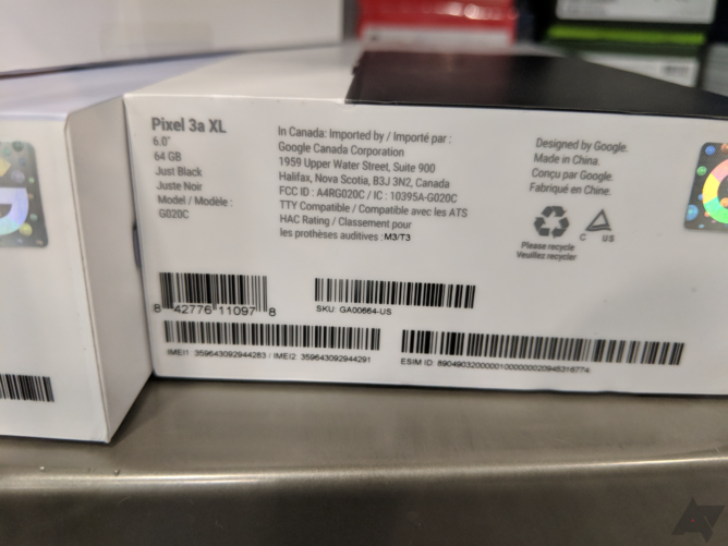 Google Pixel 3a XL с номером модели G020C оснащается 6-дюймовым дисплеем, что подтверждается его розничной упаковкой. Смартфон будет доступен в черном и белом цвете. Варианты памяти должны включать 64 ГБ и 128 ГБ.