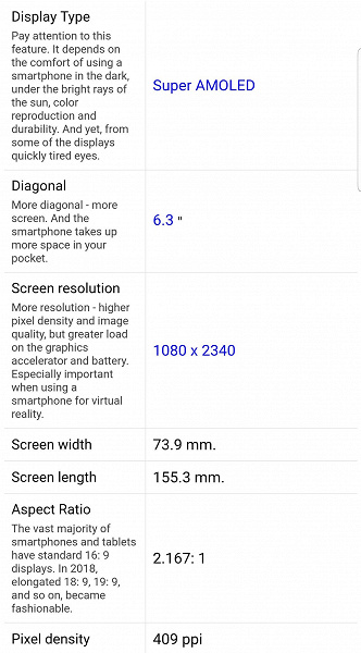 Спецификациями устройства поделился инсайдер Мукул Шарма. По его информации, Galaxy M40 оснащается 6.3-дюймовым Super AMOLED экраном с разрешением 2340 х 1080 пикселей, занимающим 85% площади лицевой панели.