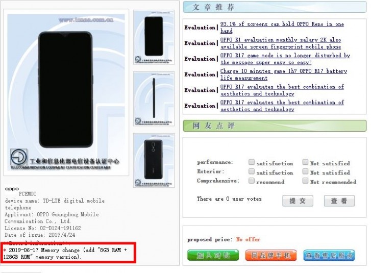 Смартфон Oppo A9x, анонсированный еще в мае, вскоре получит новую версию с 8 ГБ оперативной памяти, о чем сообщил сайт китайского телекоммуникационного агентства TENAA.