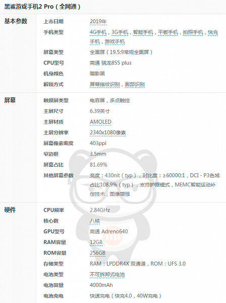 Black Shark 2 Pro, как уже известно, основан на топовой однокристальной системе Qualcomm Snapdragon 855 Plus. Также ему пророчат версию с 12 ГБ оперативной памяти.