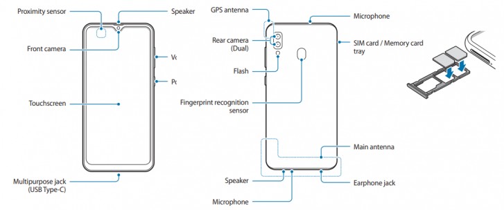 Кроме того, в Сети появилось руководство пользователя, раскрывающее еще больше деталей. Galaxy M10s будет иметь 6,4-дюймовый экран с AMOLED-панелью, а не 6,22-дюймовый, как в Galaxy M10. Однако разрешение, скорее всего, останется HD+. На задней панели телефона будет установлен сканер отпечатков пальцев.
