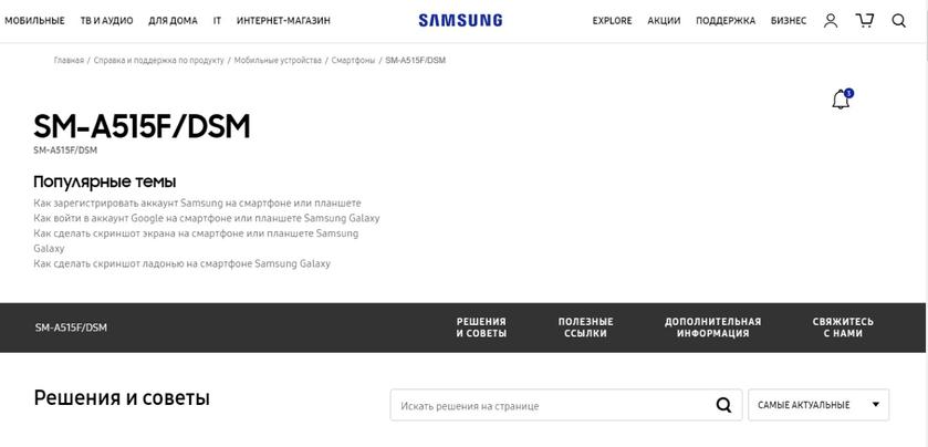 Устройство имеет номер модели SM-A515F/DSM. Его следы были замечены на официальном сайте компании. Анонс смартфона должен состояться в ближайшее время в Индии.