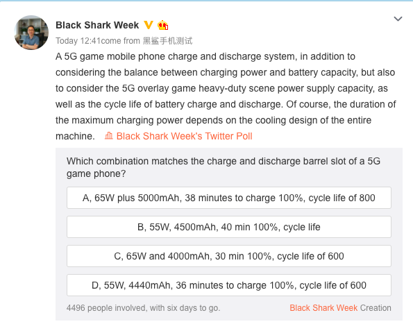 Дело в том, что компания Black Shark предложила пользователям выбрать предпочтительные показатели аккумулятора будущей новинки. Среди вариантов было следующее: