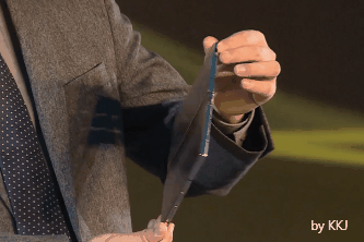 В раскрытом состоянии дисплей имеет размер 7.8 дюйма с соотношением сторон 4:3. По заверению производителя, экран эффективно работает под любым углом от 0 до 180 градусов. Слева от дисплея есть область, в которой расположилась основная квадрокамера. Смартфон получил стереодинамики.