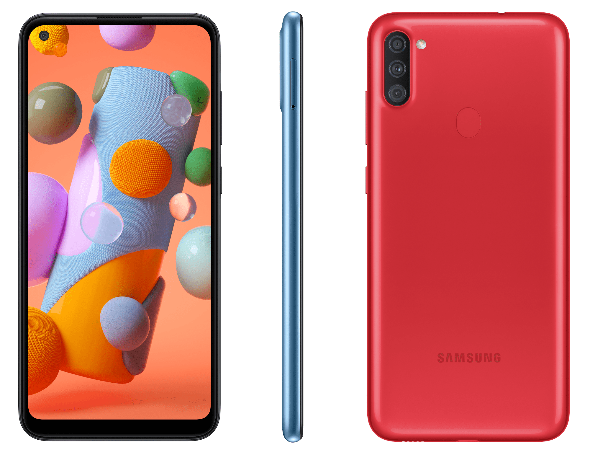 Samsung Galaxy A11 получил аккумулятор емкостью 4000 мАч с зарядкой на 15 Вт, 6.4-дюймовый дисплей с разрешением HD+ и врезанной в левую верхнюю часть 8-Мп фронтальной камерой, тройную основную камеру с 13-Мп, 5-Мп и 2-Мп датчиками, 2 ГБ ОЗУ и 32 ГБ ПЗУ, слот для карт памяти. Стоимость смартфона составила $180.