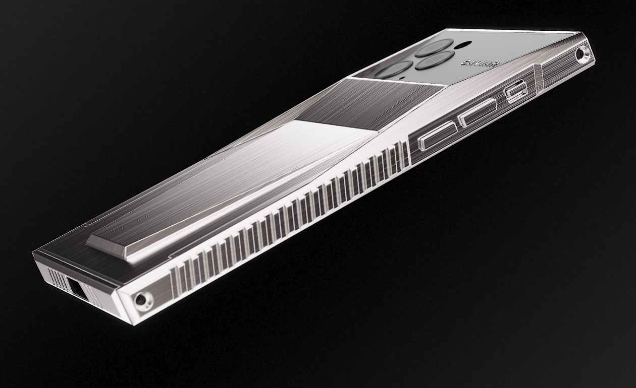 iPhone 11 Pro Cyberphone Billionaire получил корпус из цельного серебра 925 пробы со вставками из золота 750 пробы и чернённого титана.