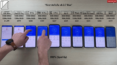 В тестировании приняли участие смартфоны Samsung Galaxy S20 Ultra, Oppo Find X2 Pro, OnePlus 8 Pro, Xiaomi Mi10 Pro, Black Shark 3 Pro, Oppo ACE 2, Red Magic 5G, Redmi K30 Pro, Realme X50 Pro и IQOO Neo 3.