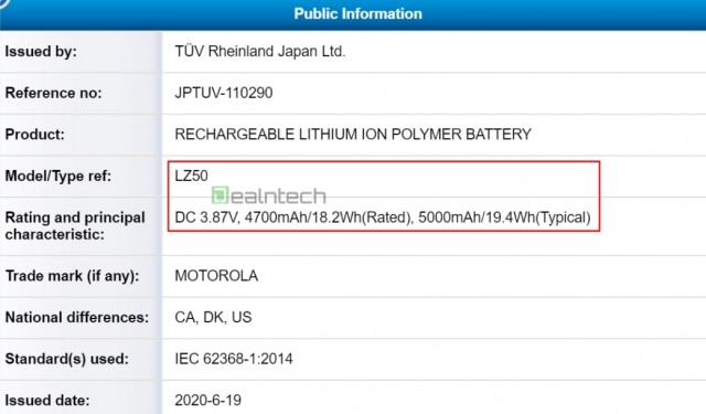 Смартфон зарегистрирован под номером модели XT2075-3. Согласно информации из FCC, устройство поддерживает двухдиапазонный Wi-Fi, NFC, 5G, Galileo, ГЛОНАСС и GPS.