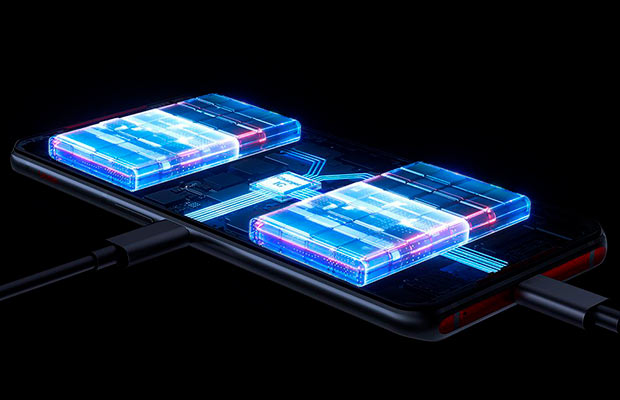 Lenovo Legion Duel — это уникальный смартфон, который имеет два аккумулятора емкостью 2500 мАч, которые разделены физически, два порта USB-C на нижней и левой гранях, два вибромотора и две тепловые трубки.