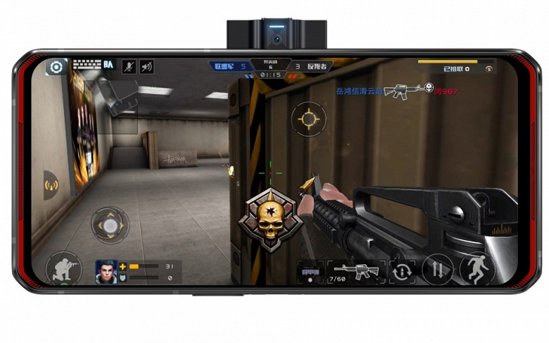 Фронтальная 20-Мп камера выдвигается из левой грани. Модуль камеры оказался достаточно крупным из-за того, что на нем уместились еще и четыре микрофона. Выдвигается камера за 0.5 с и выдерживает свыше 400 000 циклов открытия и закрытия.