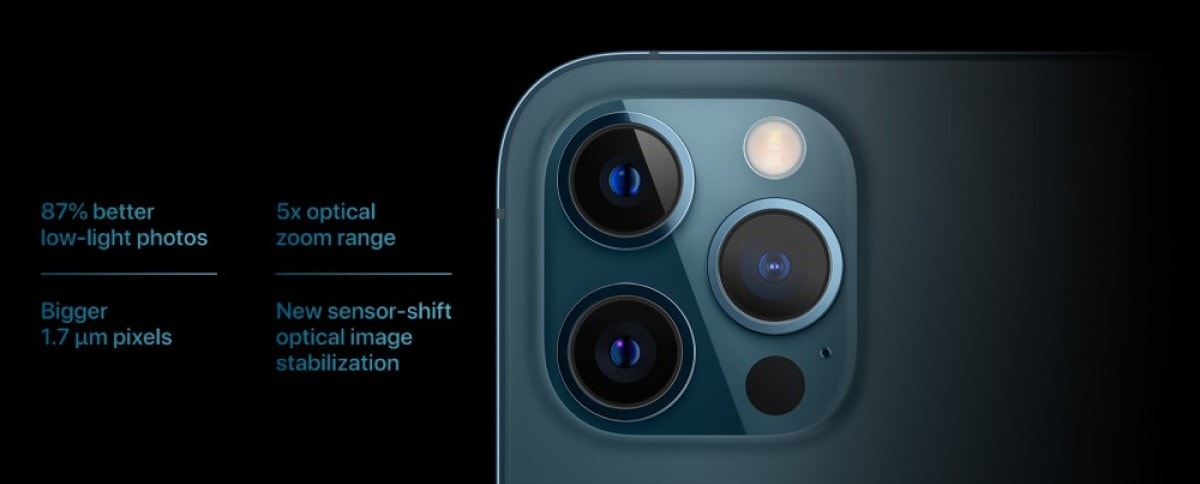 Когда дело доходит до камер, тут и появляются отличия между iPhone 12 Pro и 12 Pro Max. Старшая модель получила 12-Мп основную камеру с более крупным 1/1,7-дюймовым сенсором (размер пикселя 1,7 мкм), который на 47% больше, чем у модели 12 Pro и старого iPhone 11 Pro Max. В сочетании с диафрагмой f/1.6 на сенсор попадает на 87% больше света. Кроме того, Apple изменила стабилизацию изображения, используя сдвиг сенсора вместо перемещения линзы оптики для противодействия движениям.