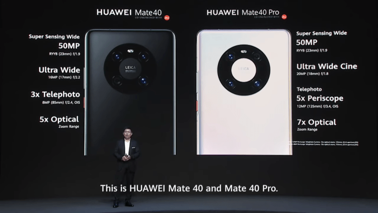 На задней панели Mate 40 установлен блок камер с оптикой Leica в виде бублика. Он включает широкоугольную 50-мп основную камеру (23 мм) с диафрагмой f/1.9 и самым большим сенсором на рынке (1/1.28″) по сравнению с более дорогими аналогами. Она также поддерживает всенаправленный PDAF и лазерный автофокус. Основную камеру дополняют 16-Мп сверхширокоугольная (17 мм) с диафрагмой f/2.2 и 8-Мп телеобъектив (f/2.4) с 3-кратным оптическим зумом, PDAF и OIS.
