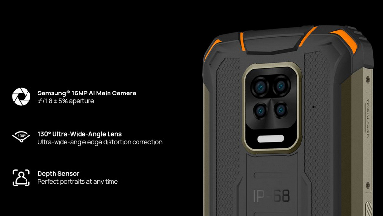 Смартфон соответствует степени защиты IP68. Он получил чип MediaTek Helio P22, 4 ГБ ОЗУ, 128 ГБ флэш-памяти, 2-ваттный динамик, основную квадрокамеру с 16-Мп, 8-Мп, 8-Мп и 2-Мп датчиками изображения.