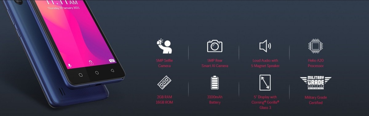 Lava Z1 является самым бюджетным смартфоном среди представленных. Он получил 5-дюймовый дисплей с разрешением 480x854 пикселей, защитой Gorilla Glass 3 и одиночными 5-Мп камерами на передней и задней панели (съемка видео ограничена разрешением HD).