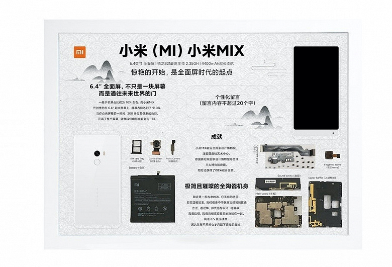 Теперь же компания Xiaomi решила поставить на поток данную идею. В фирменном магазине Xiaomi Mall предлагают приобрести за $30 разобранные смартфоны, помещенные в деревянную рамку. Данное произведение искусства также можно сопроводить подписями и изображениями.