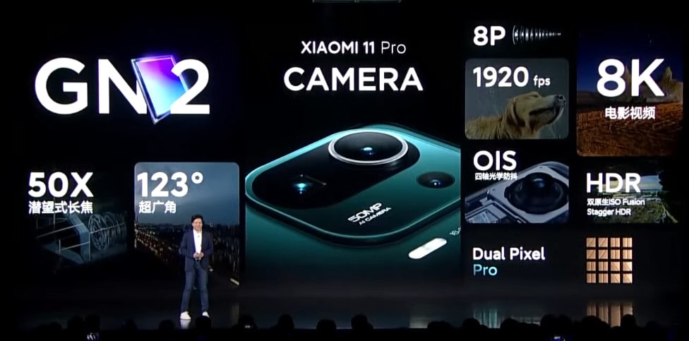 Говоря о камерах, Mi 11 Pro — первый смартфон, который получил сенсором Samsung GN2 с разрешением 50 мегапикселей. Массивный модуль размером 1/1,2 дюйма может похвастаться пикселями размером 1,4 мкм. Камера поддерживает запись 8K-видео.