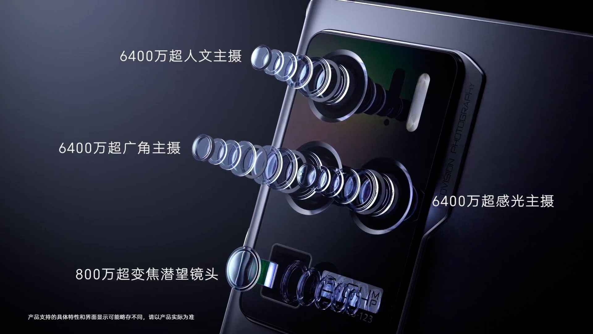 Функции камеры включают запись видео в формате 8K с частотой 30 кадрjs в секунду, стабилизацию на уровне Steadicam (с двойной стабилизацией OIS + EIS), 60-кратный гибридный зум, запись видео HDR10, режимы Super Night и Super Moon Ultra для съемки звезд и луны. Спереди расположена 16-Мп камера для селфи.