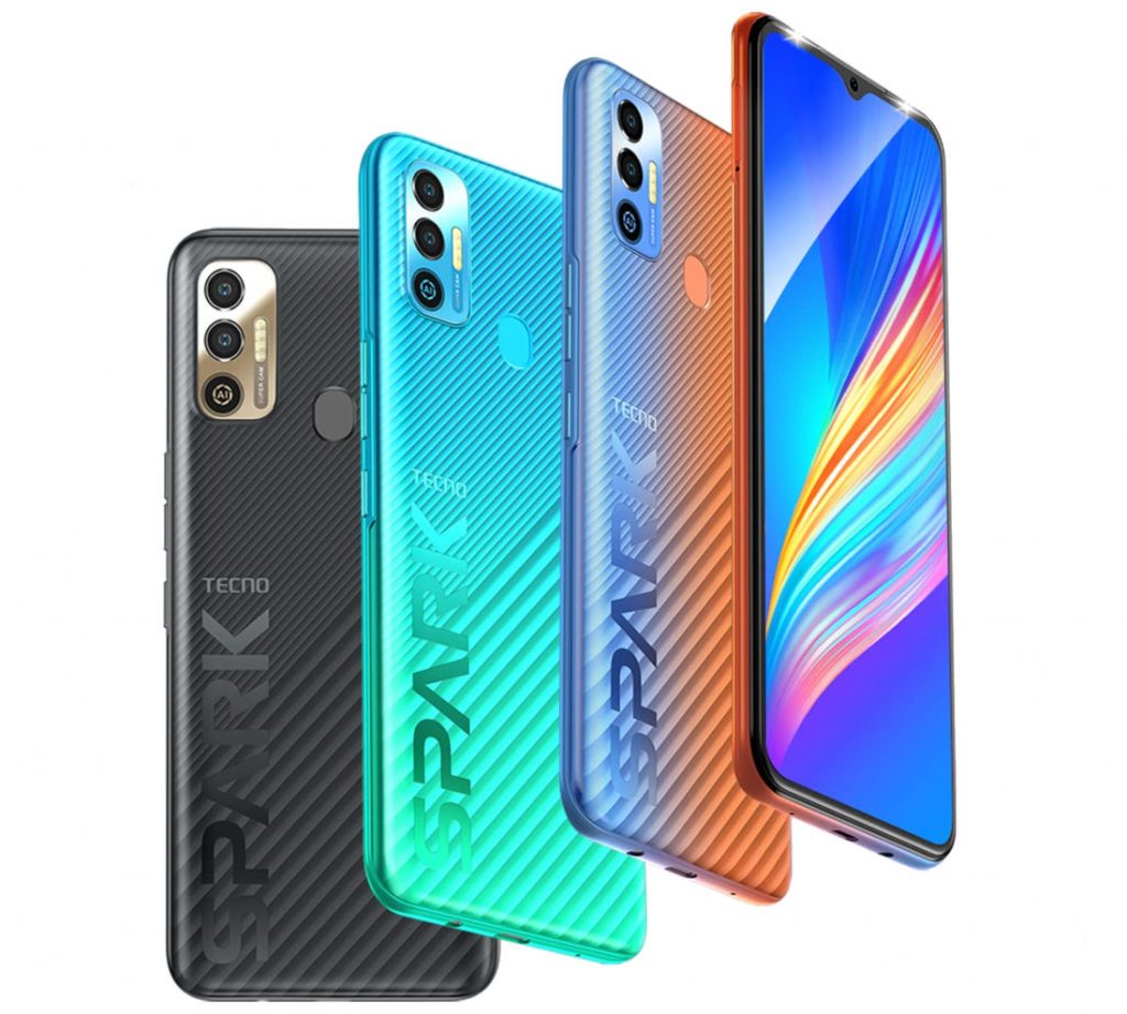 Tecno Spark 7T имеет пластиковый корпус и доступен в трех ярких цветах: Jewel Blue, Nebula Orange и Magnet Black. Размеры устройства составляют 164,82 x 76,05 x 9,52 мм, а вот официальных данных о его весе, к сожалению, нет.